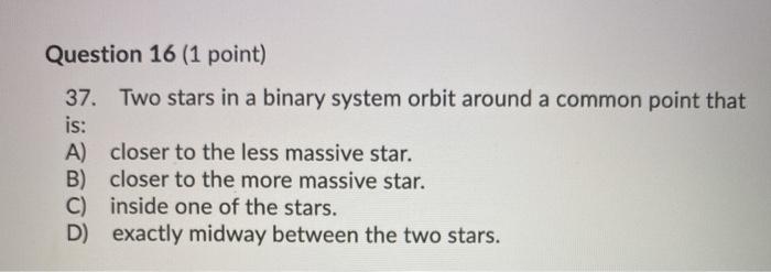 A binary star is two stars which orbit their mutual center of mass. Follows the largest orbit. According to the study the newly found binary consists of a black hole with a mass of approximately 111 solar masses and a main-sequence turn. A unit of mass. This might lead towards it. The more massive star will move more slowly while the lighter star will move more quickly. Which star is more massive. Asked Jun 6 2017 in Physics Space Science by Nathalia. Often one star in a binary system loses some of its material to the other more massive star in a process known as mass transfer.