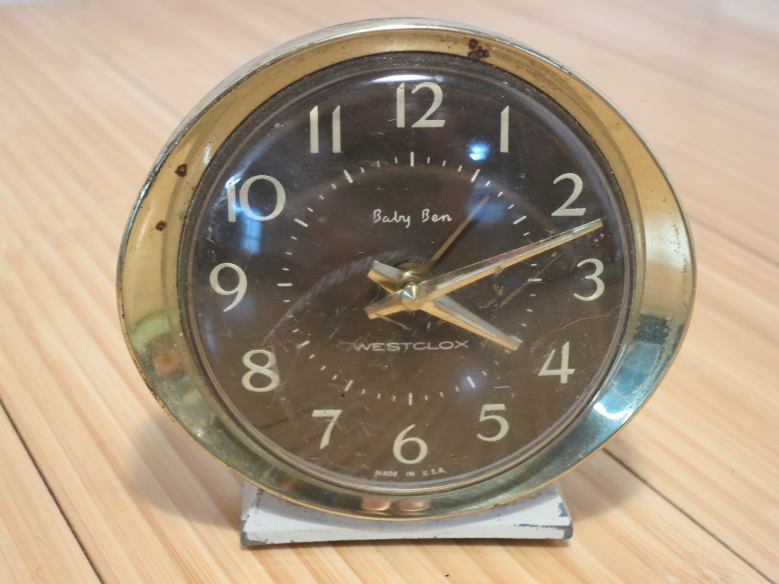 Westclox Baby Ben Wind Up Alarm Clock for Parts or Repair Cream Gold Glow Face. It looks like the oldest Baby Ben is a 61 V one says 10 58056 on the bottom and the other Baby Ben says 8 58056 on the bottom. The person said he believed it was wound too tight. 0 bids Time left 6d 20h left C 6423 shipping. Westclox Big Ben and Baby Ben Repair Tips. 2000 Deluxe Big Ben Alarm Clock. I also demonstrate that the springs are the same for styles 2 thru 7 2-keyProcedure is basically the same for t. In particular early Westclox model. WESTCLOX BABY BEN alarm clock for repair - 950.