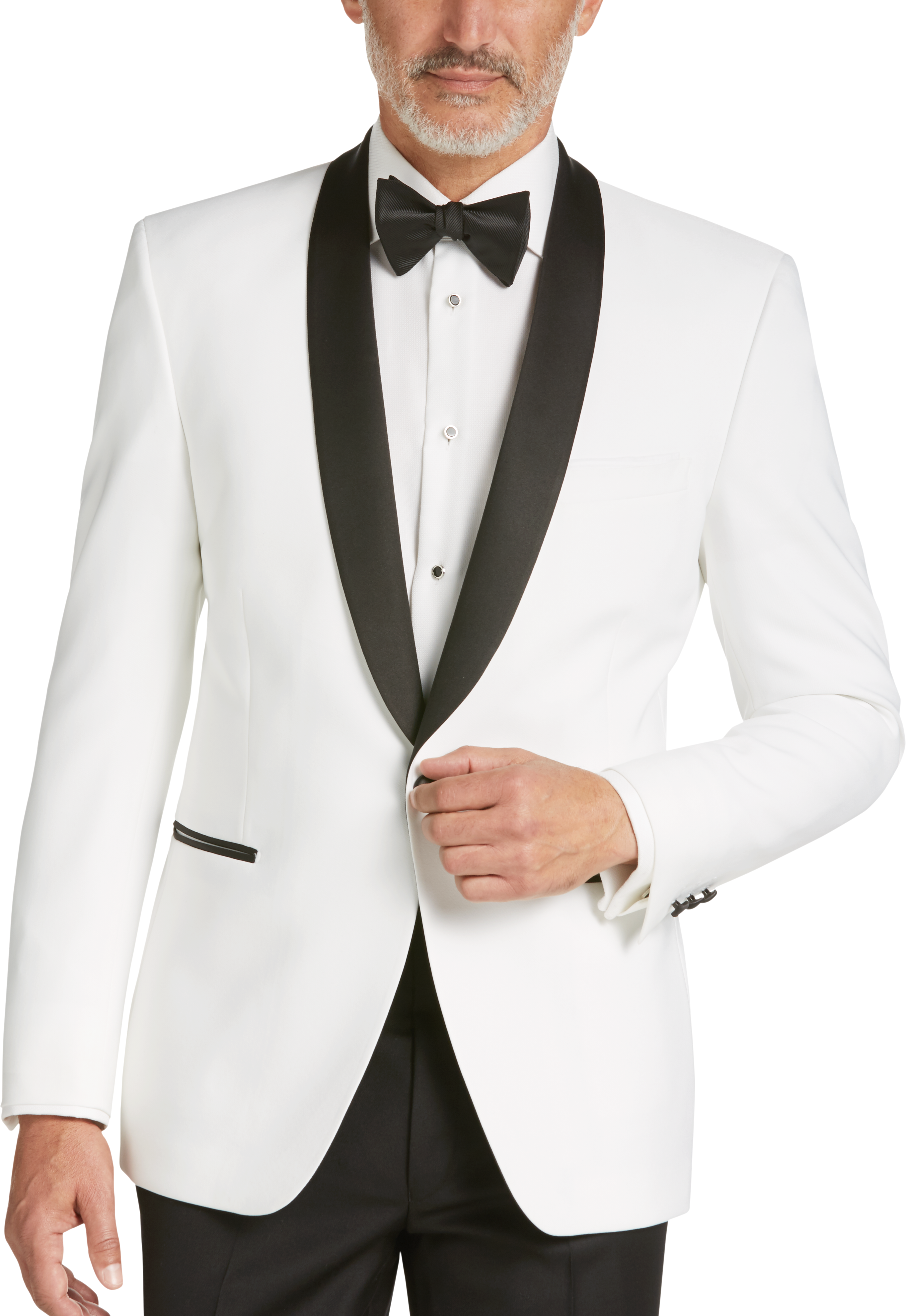 Theo Off-White 1-Button Shawl Tuxedo - 3 Piece Suit For Men - Three piece suit. To ensure the best fit our suit trousers are unfinished and require alteration. White Tuxedo with black satin shawl lapel. White Shawl with Black Lapel - Coat Only. Order yours online now. Wynn White 1-Button Shawl Tuxedo - 3 Piece Suit For Men - Three piece suit. EZ Tuxedo White and Black Shawl Tuxedo DTWHITEBLKSHAWL - Please Allow 3-4 Weeks to Ship 100 Luxury Grade Microfiber One Button Black Contrasting Shawl Lapel and Collar Barrel Jacket Sleeves Contrasting Center and Sleeve Buttons Attractive Inside Jacket Lining non-vented Tailored Fit Includes Black 100 Wool Flat Front Trousers.
