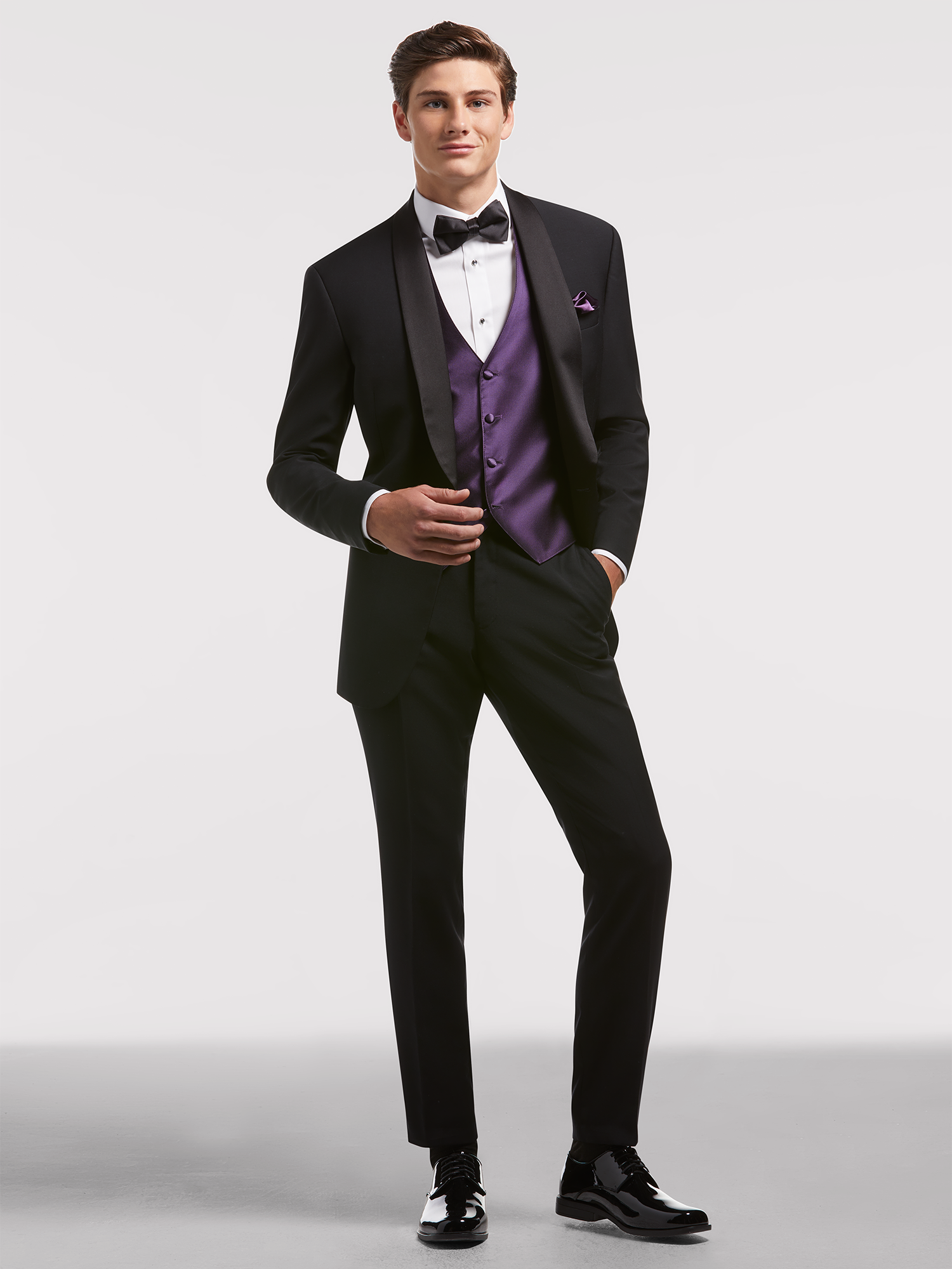 EZ Tuxedo White and Black Shawl Tuxedo DTWHITEBLKSHAWL - Please Allow 3-4 Weeks to Ship 100 Luxury Grade Microfiber One Button Black Contrasting Shawl Lapel and Collar Barrel Jacket Sleeves Contrasting Center and Sleeve Buttons Attractive Inside Jacket Lining non-vented Tailored Fit Includes Black 100 Wool Flat Front Trousers. With crisp lines and a smooth finish our Black Shawl Lapel tuxedo will have you looking and feeling your best on the big day. Post navigation Previous Tuxedo Carousel. To ensure the best fit our suit trousers are unfinished and require alteration. The White Lorenzo Tuxedo features besom pockets side vents for added comfort and mobility and one. We offer Tuxedo rentals and on the spot tailoring to all customers in store. Order yours online now. Four inner pockets with a front left chest pocket two lower front pockets and a fourth smaller one. White Tuxedo with black satin shawl lapel.
